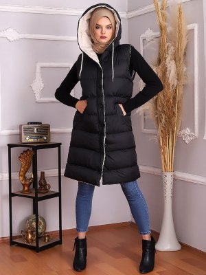 Muzze Taş Astarlı Siyah Şişme Yelek