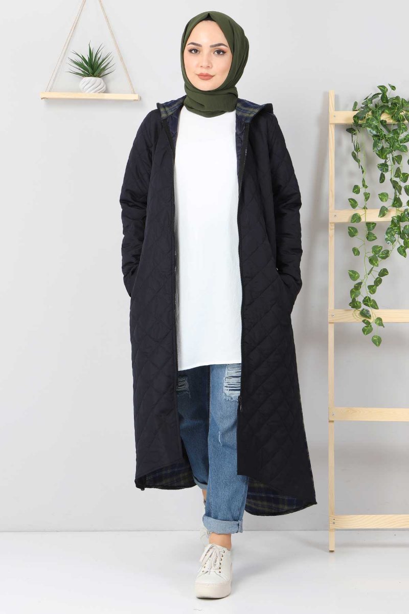 Tesettür Dünyası Haki Ekoseli Kapitone Kap