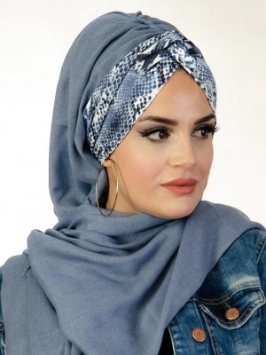 AİŞE TESETTÜR İndigo Desenli Burgu Şal