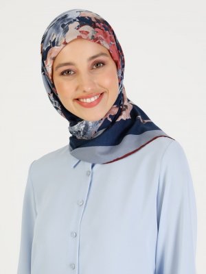 Miray Lacivert Mavi Soft Floral Desen Eşarp