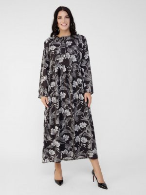 Alia Siyah Büyük Beden Çiçek Desenli Elbise