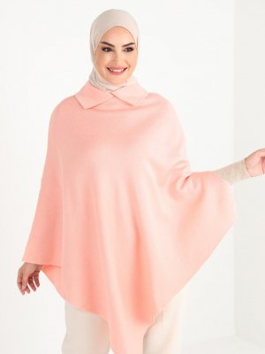 Tavin Pudra Yaka Detaylı Asimetrik Triko Panço