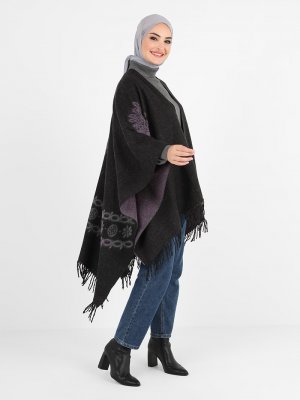 Tavin Mor Çift Yönlü Püskül Detaylı Desenli Panço