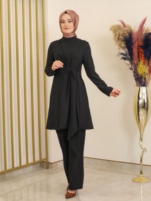 Fashion Showcase Design Siyah Çıtçıt Detaylı Tunik & Pantolon İkili Takım