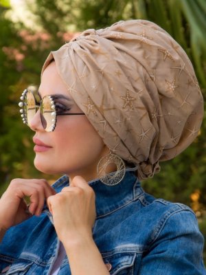 AİŞE TESETTÜR Vizon Desenli Hazır Türban