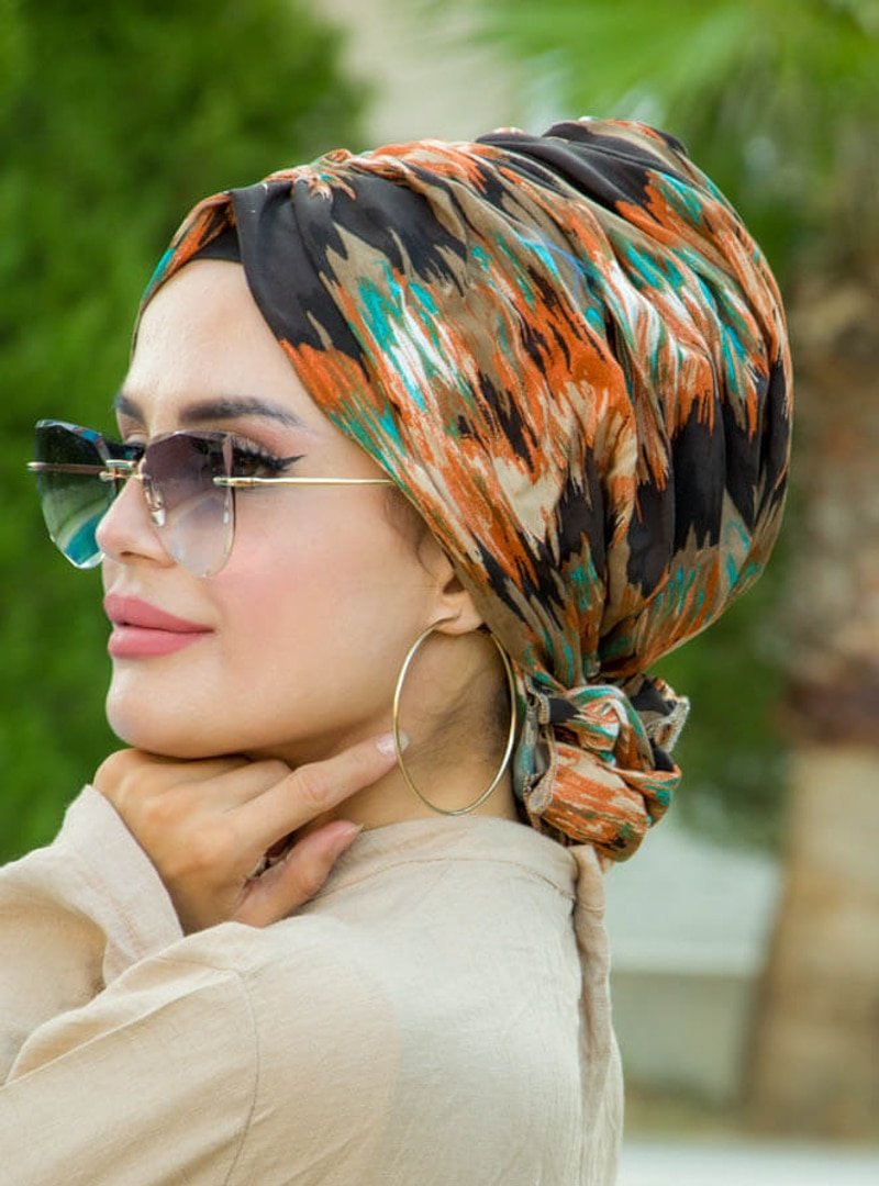 AİŞE TESETTÜR Taba Desenli Hazır Türban