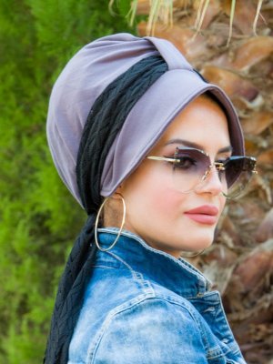 AİŞE TESETTÜR Duman Gri Sade Hazır Türban