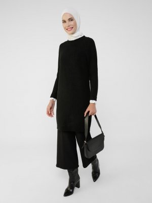 Refka Siyah Yaka Ve Kol Uçları Dantelli Triko Tunik