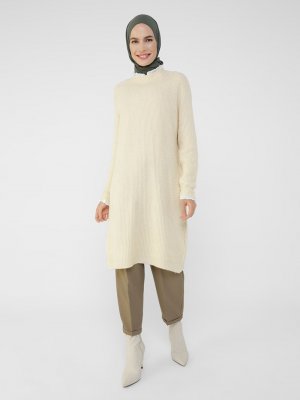 Refka Krem Yaka Ve Kol Uçları Dantelli Triko Tunik