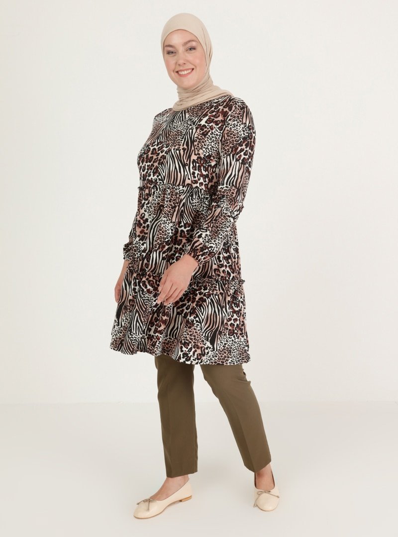 GELİNCE Siyah Kahverengi Desenli Tunik