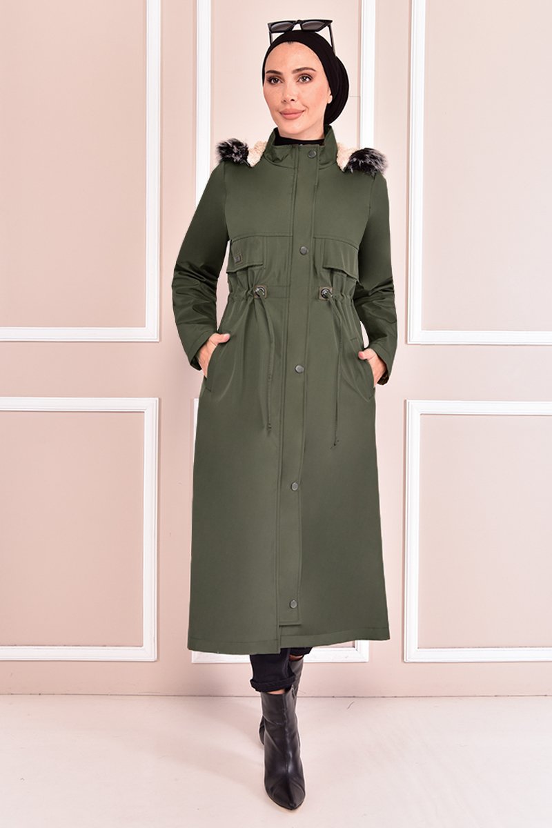 Moda Merve Kapüşonlu Kaban Haki