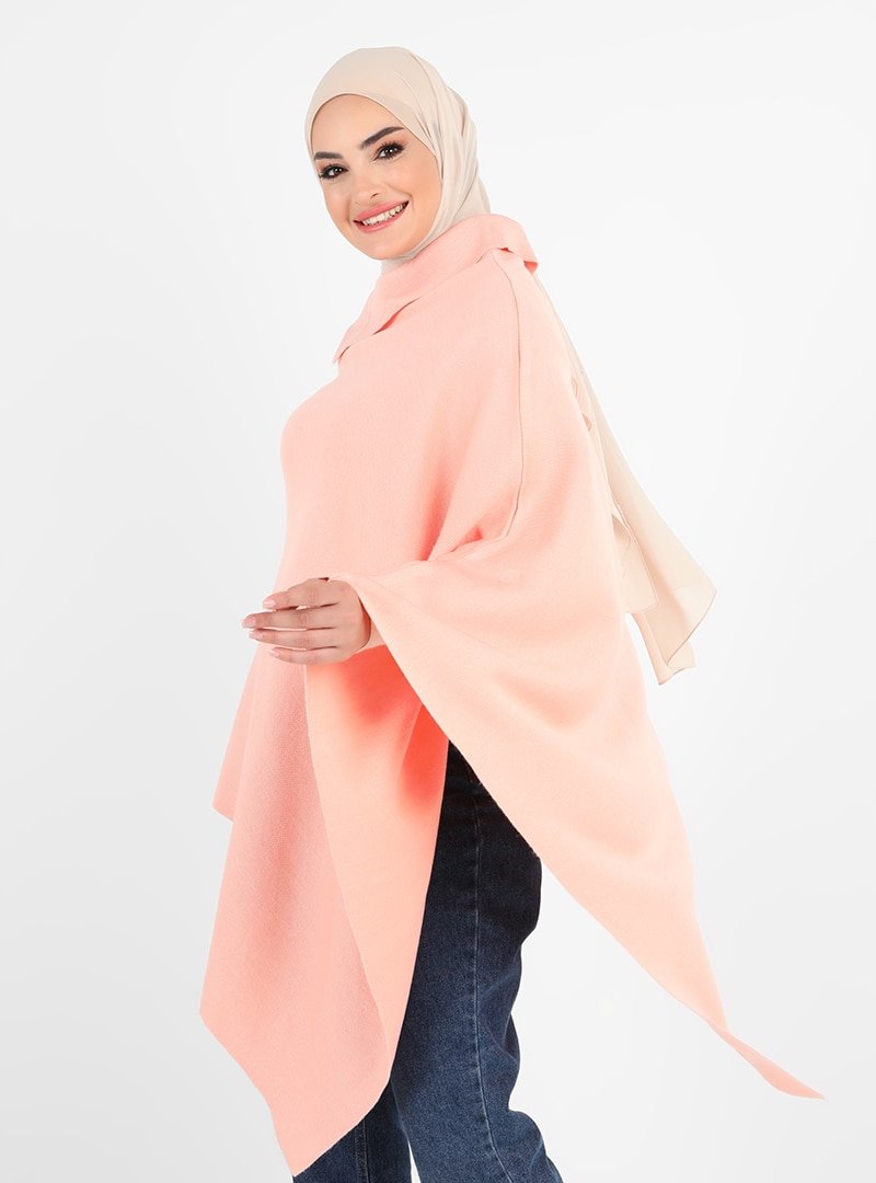 Tavin Pudra Yaka Detaylı Asimetrik Düğmeli Triko Panço