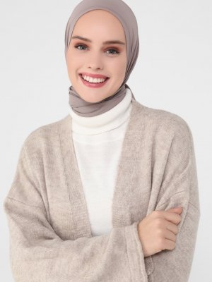 Refka Vizon Cep Detaylı Oversize Triko Hırka