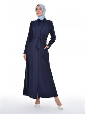 Jamila Lacivert Düğme Detaylı Ferace