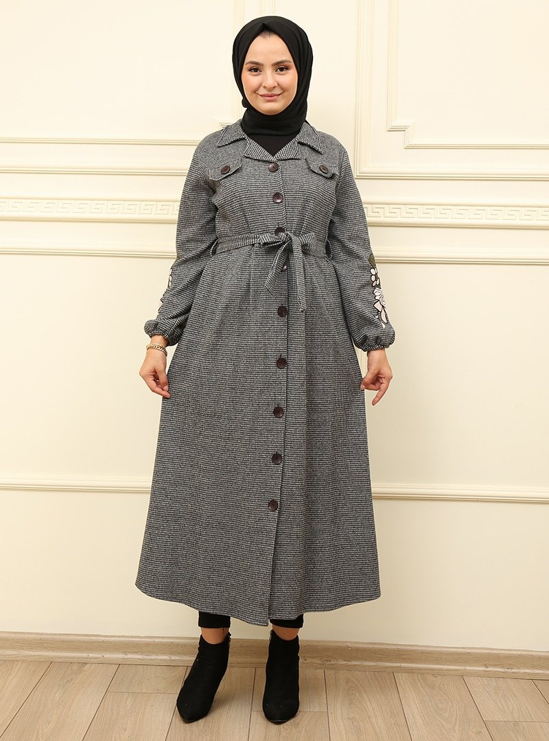 Moda Dua Gri Çiçek Desenli Kap