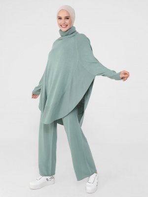 Refka Çağla Rahat Kesim Tunik & Pantolon İkili Triko Takım