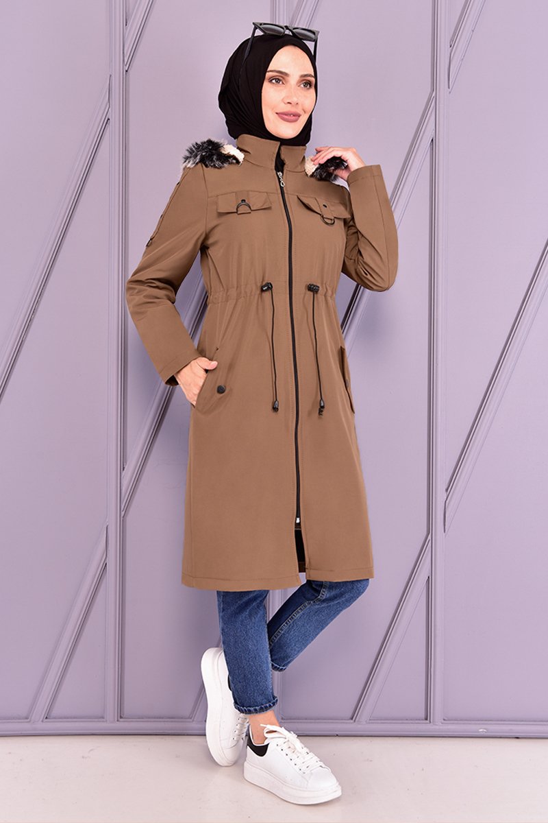Moda Merve Kahverengi Kapüşonlu Kaban