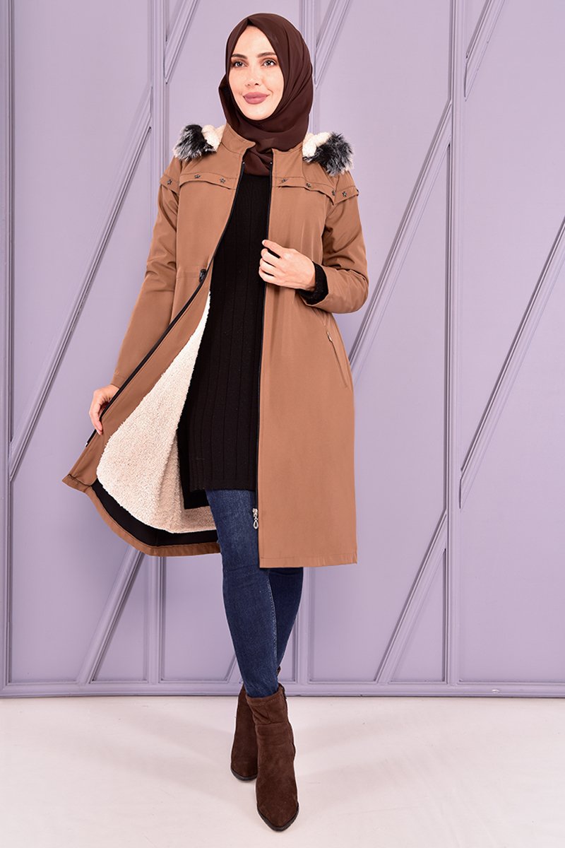 Moda Merve Kahverengi Kapüşonlu Kaban