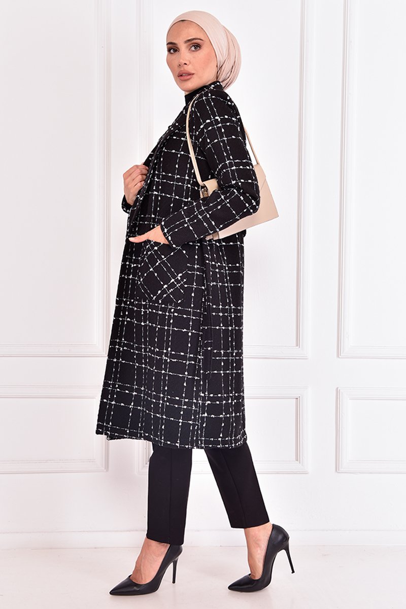 Moda Merve Siyah Kuşaklı Kaban