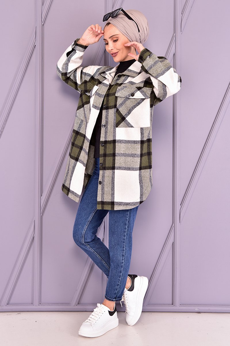 Moda Merve Haki Oduncu Gömlek