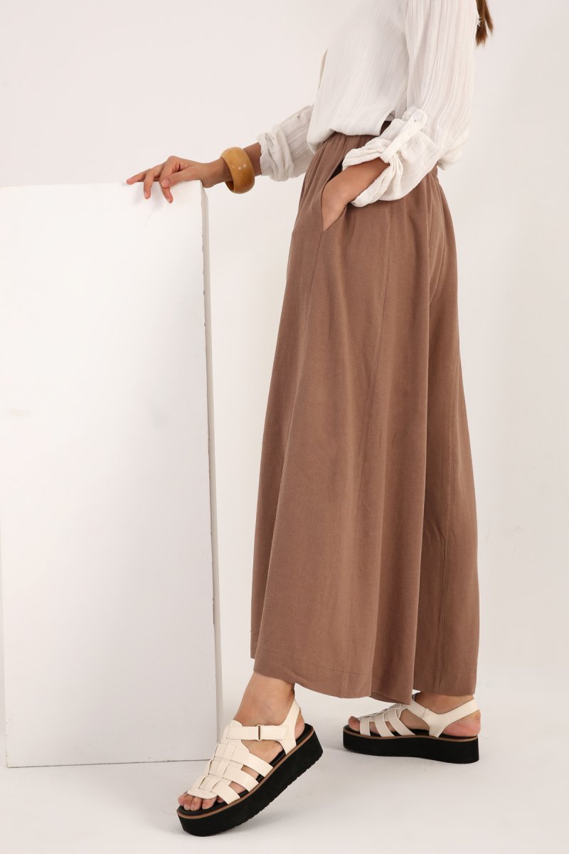 Allday Sütlü Kahve Bol Keten Pantolon