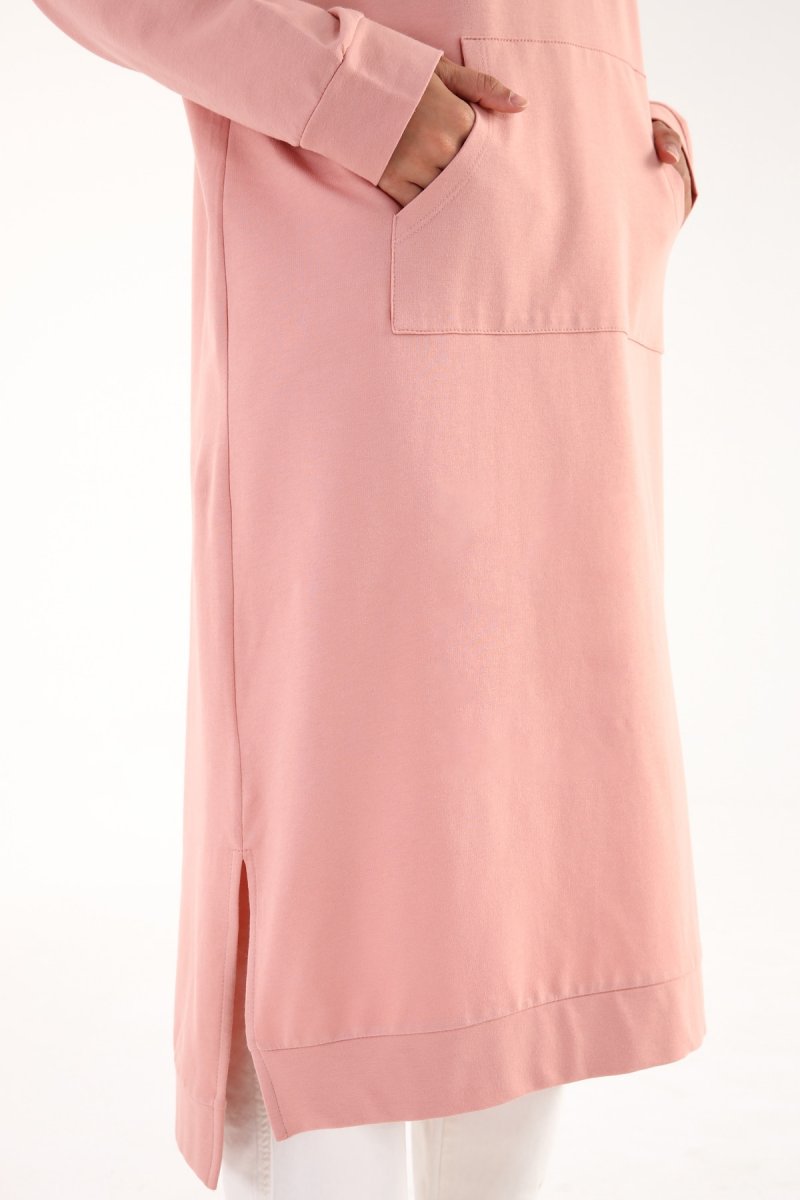 Allday Pudra Kanguru Cepli Yırtmaçlı Pamuklu Elbise Tunik
