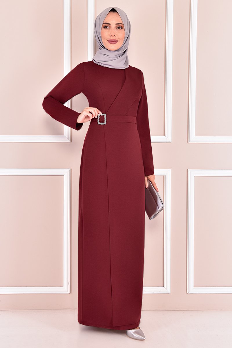 Moda Merve Bordo Tokalı Abiye Elbise