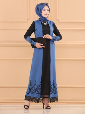 Tofisa İndigo Eteği Dantel Detaylı Elbise
