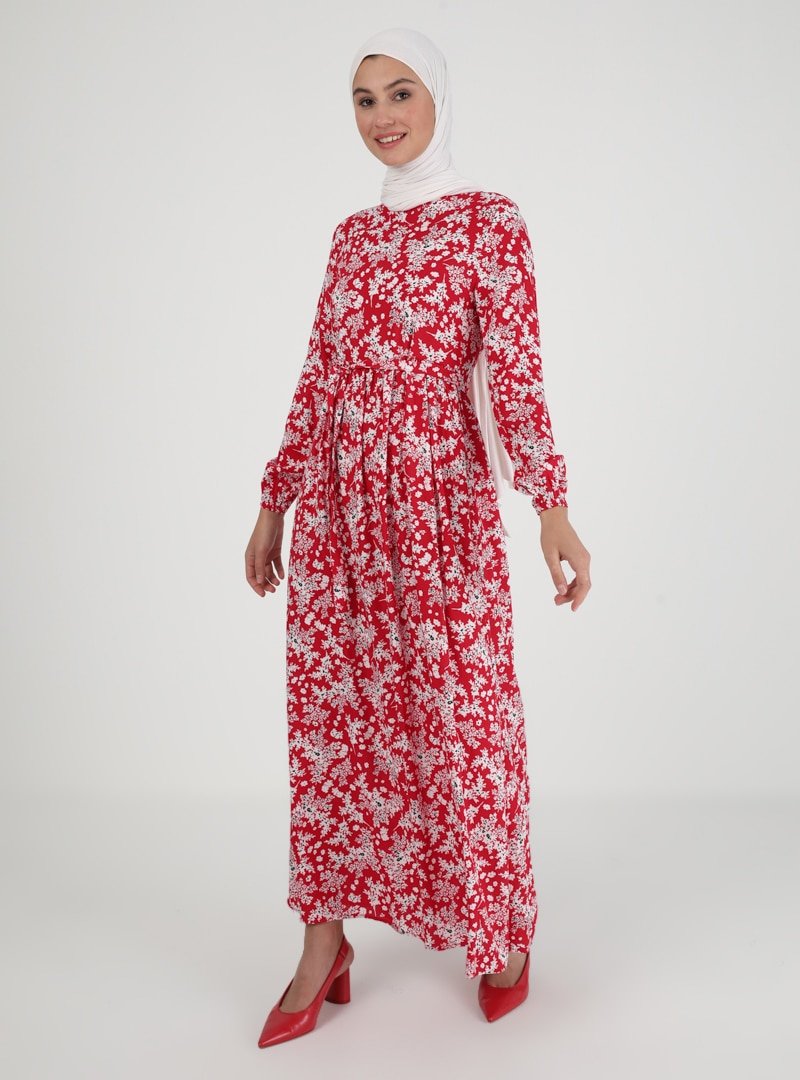 ECESUN Kırmızı Çiçek Desenli Elbise