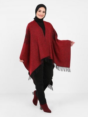 Tavin Kırmızı Çift Yönlü Püskül Detaylı Desenli Panço