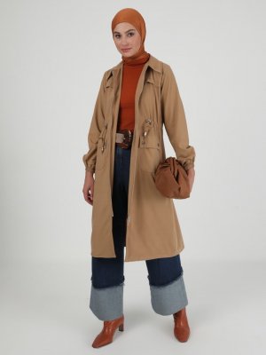 BÜRÜN Camel Boydan Fermuarlı Trençkot