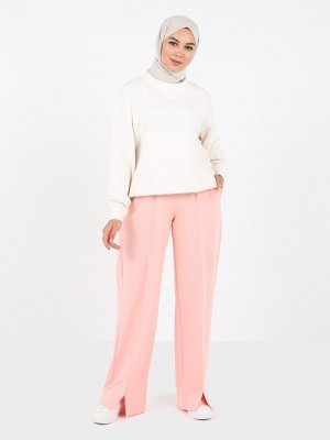 Tavin Pudra Beli Lastikli Rahat Kesim Dikiş Detaylı Pantolon