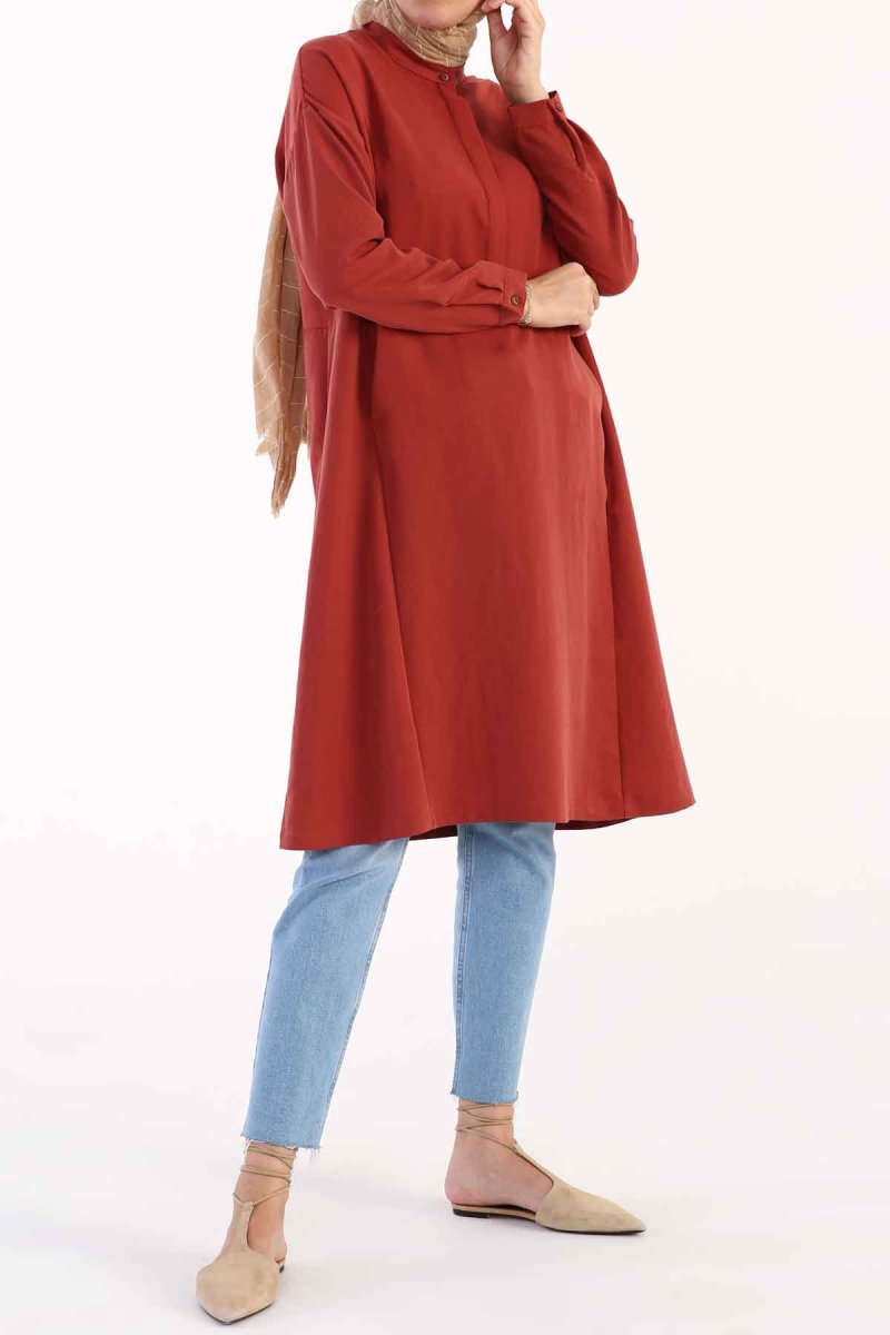 Allday Kiremit Tensel Rahat Kalıp Patlı Tunik