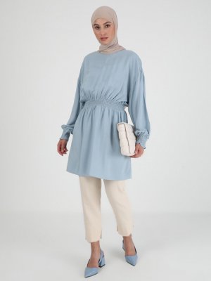 Phull İndigo Beli Lastikli Kol Detaylı Tunik