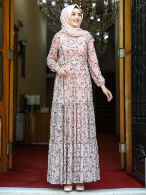 Amine Hüma Pudra Büzgülü Leopar Abiye Elbise