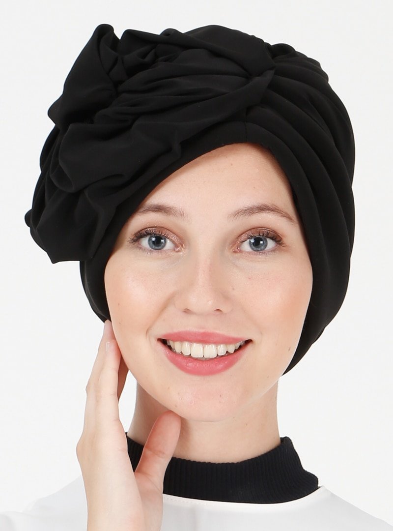 Vera Bone Siyah Çiçekli Hazır Türban