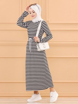 Tofisa Siyah Çizgili Elbise