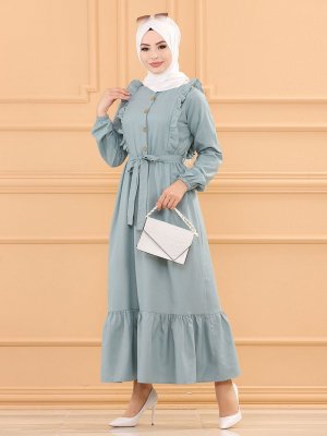 Tofisa Mint Fırfır Detaylı Elbise