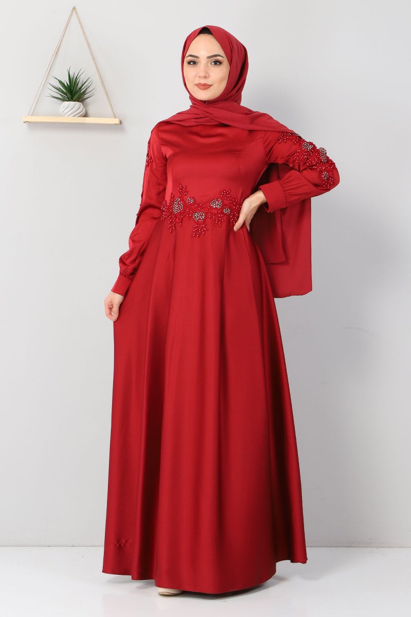 MISSVALLE Bordo Aplike Dantelli Elbise