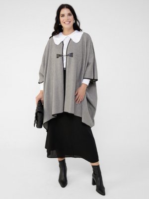 Alia Siyah Gri Büyük Beden Biye Detaylı Desenli Kaban