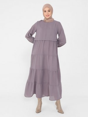 Refka Lavanta Kol Ucu Gipeli Rahat Kesim Elbise