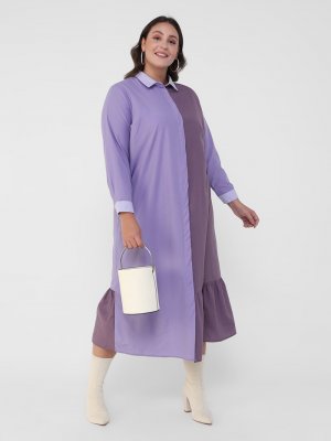 Alia Tonlu Lila Büyük Beden Gizli Düğmeli İki Renkli Elbise