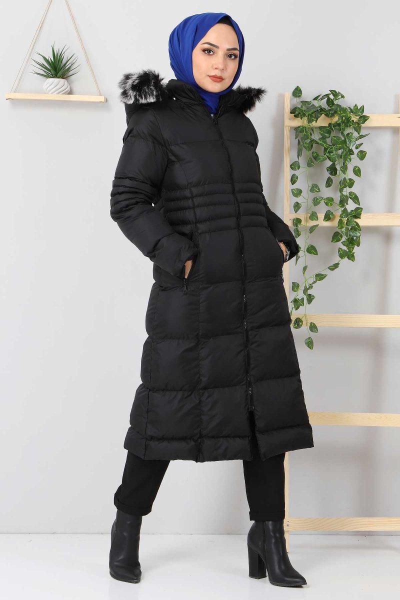 Tesettür Dünyası Siyah Kürklü Şişme Mont