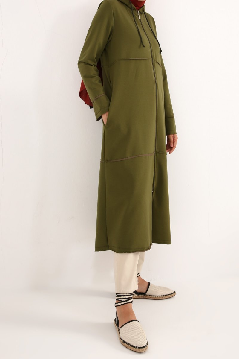 Allday Haki Kapüşonlu Fermuarlı Hırka