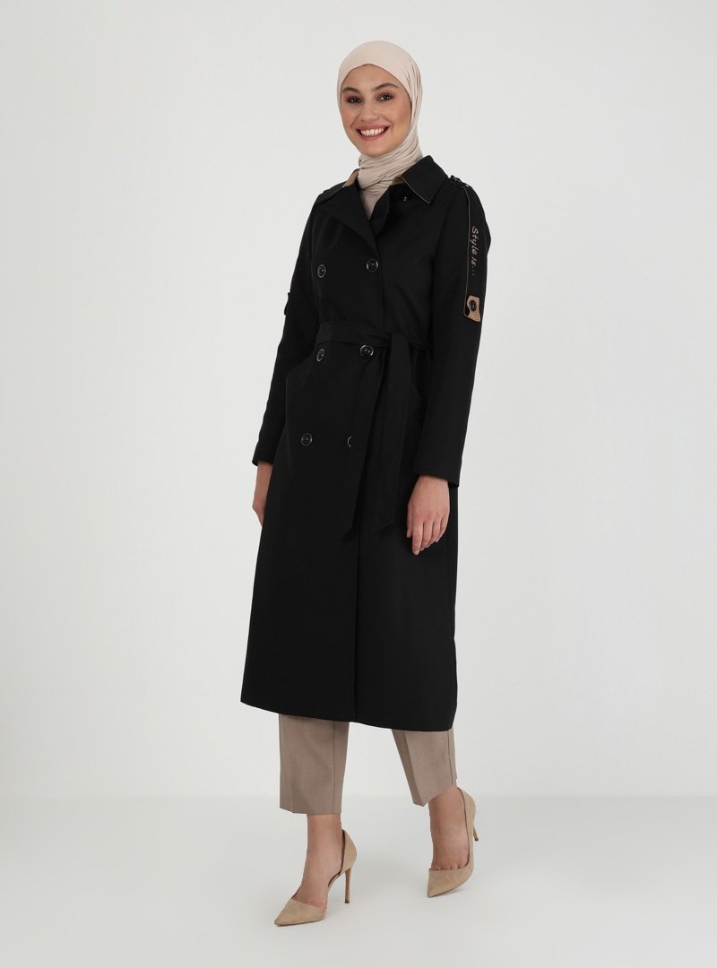 Olcay Siyah Düğme Detaylı Trençkot