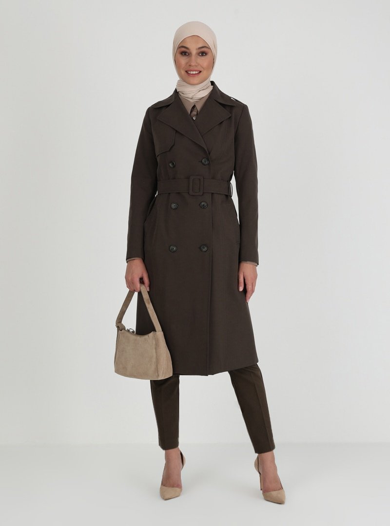 Olcay Haki Düğme Detaylı Trençkot