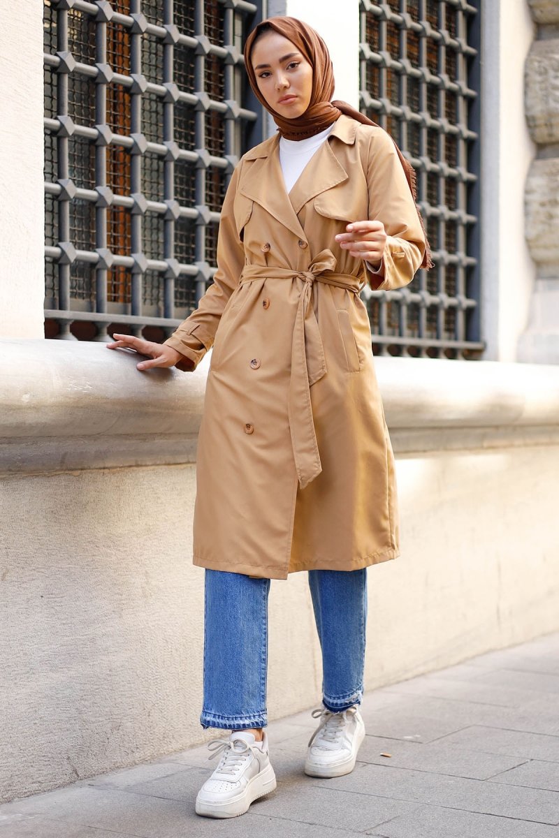 In Style Vizon Düğme Detaylı Kruvaze Trençkot