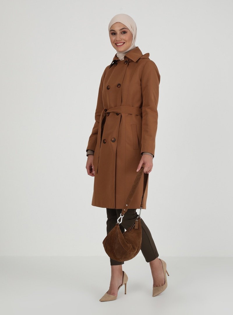Olcay Taba Kapüşonlu Düğme Detaylı Trençkot