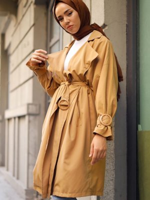 In Style Camel Kruvaze Halka Detay Salaş Trençkot