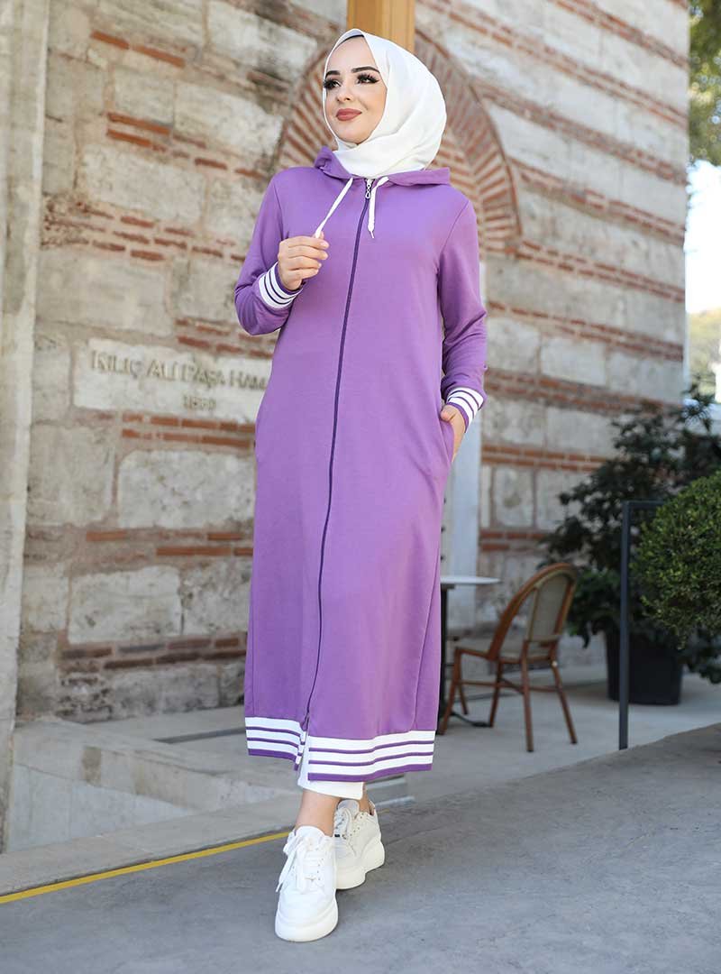 HAKİMODA Lila Boydan Fermuarlı Ribanalı Kap